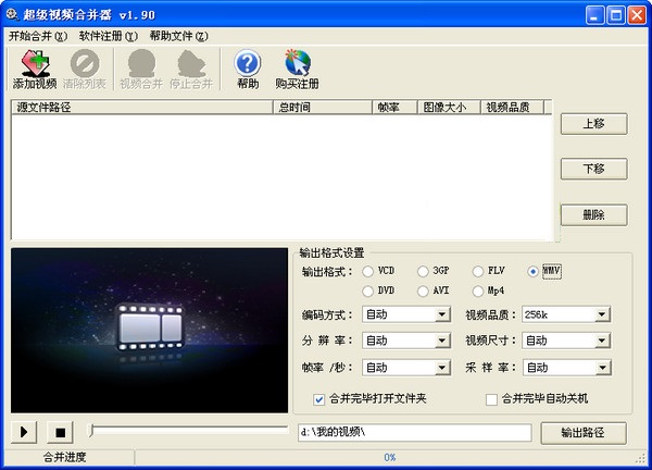 2、支持幾乎所有的視頻格式合并轉(zhuǎn)換為FFLV、AVI、VCD、DVD、WMV、3gp、mp4等格式;