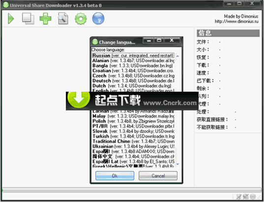 USDownloader 可以幫助你從國(guó)外的軟件共享網(wǎng)站下載 IE 無法下載的文件。例如:RapidShare等。因漢化的是語言包,部分字詞會(huì)顯示為英文