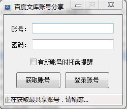 百度文庫賬號分享軟件可以自動獲取作者分享的賬號,可以讓用戶有充足的財(cái)富值下載需要的文檔,方便用戶的學(xué)習(xí)和工作.獲取到百度文庫帳號后,軟件還可以自動登錄獲取到的百度文庫帳號,并打開百度文庫首頁供用戶閱覽和下載百度文庫的文檔。