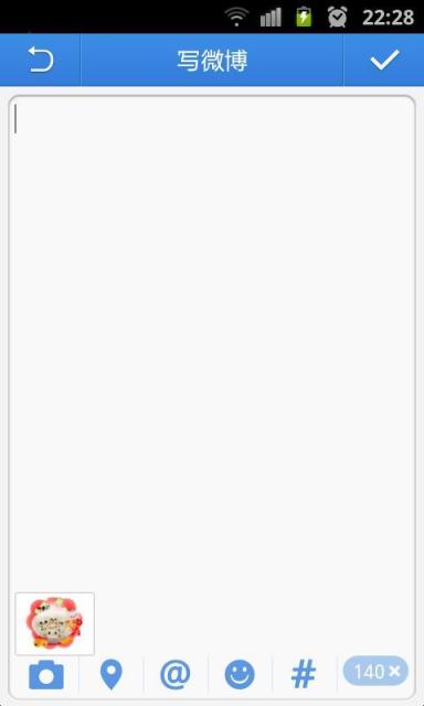 即拍即傳的拍照功能,分享微博生活;豐富的媒體支持,包含多平臺(tái)的表情,png,jpg以及gif動(dòng)畫(huà)等;