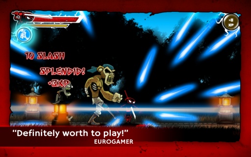 DrawSlasher(血飲狂刀)在玩法上類似于水果忍者,通過用手指在屏幕上劃過來殺死敵人的。當你用手指劃過敵人的身體的時候,它會被一分為二,然后紅色的鮮血噴濺而出,在這個黑白色彩的基礎(chǔ)上,顯得格外的刺眼。【游戲背景】
