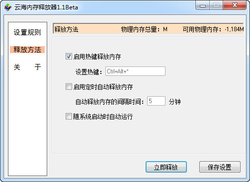 1、手動(熱鍵)釋放內存:內存緊張或運行大行軟件或游戲時,釋放一下!可以為大型軟件提供更多的可用內存!