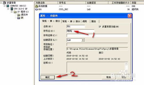 在OB1主程序中調(diào)用FB塊-->FB2到程序段中,添加關(guān)聯(lián)的DB2背景數(shù)據(jù)塊。