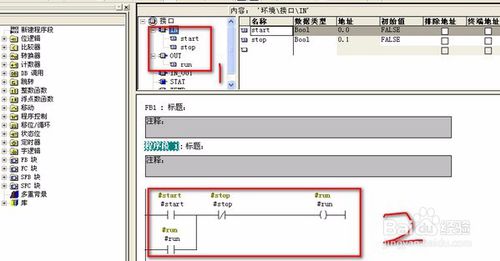 打開FB1功能塊在里面創(chuàng)建起跑停程序(在此處編寫自己的控制程序)。