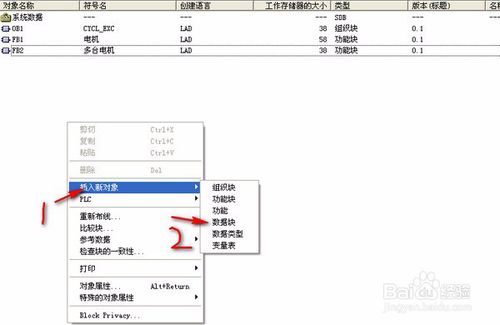 在S7程序的塊中創(chuàng)建一個(gè)FB1功能塊,并將符號(hào)名命為“電機(jī)”。