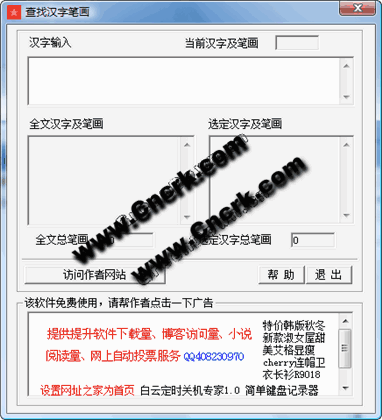 用于查找國(guó)標(biāo)簡(jiǎn)體漢字的筆畫數(shù),可以查找單個(gè)漢字的筆畫數(shù)或者一段漢字的總筆畫數(shù)