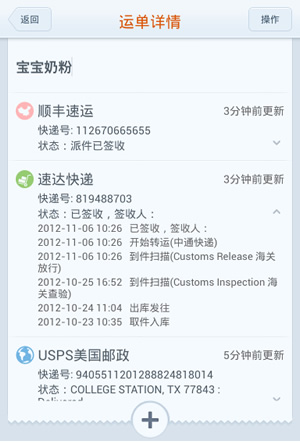 海淘通可以幫你查詢你的運單詳情,支持查詢國內(nèi)外各大主流快遞公司查詢以及大部分的轉(zhuǎn)運查詢。海淘通支持查詢的轉(zhuǎn)運公司、國外快遞、國內(nèi)快遞達(dá)80多家,內(nèi)置主流物流公司查詢跟蹤、最新快遞狀態(tài)自動提醒等便利功能,界面友好,更新迅捷。海淘通便捷的運單查詢管理服務(wù),創(chuàng)新的二維碼同步快遞單號,貼心的物流跟蹤提醒,以及全面的快遞信息列表展示,將成為你海淘的必備利器。