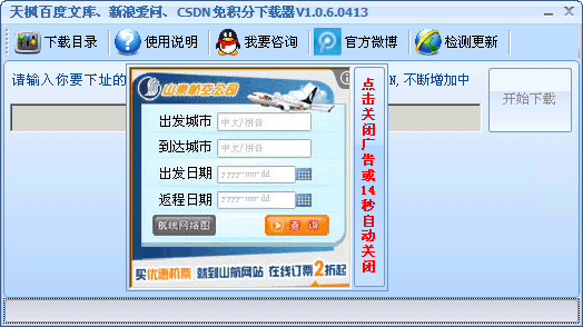 天楓免積分下載器 1.2.2.0530 簡(jiǎn)體中文綠色免費(fèi)版 天楓免積分下載器,目前支持百度文庫(kù)、新浪愛(ài)問(wèn)、csdn,使用該軟件可以免費(fèi)下載百度庫(kù)、新浪愛(ài)問(wèn)、csdn需要積分或財(cái)富值的資源。