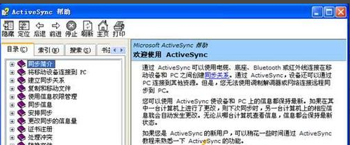 微軟同步軟件帶有非常完整的幫助文檔,在“幫助”-“ActiveSync 幫助”中可以查看,同時(shí)還可以在“聯(lián)機(jī)”中獲取更多幫助。