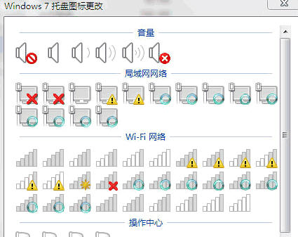 Win7托盤圖標更改工具不用手動去替換系統(tǒng)dll里面的圖標了。輕松地把這些圖標統(tǒng)統(tǒng)換掉,讓你從此告別審美疲勞。