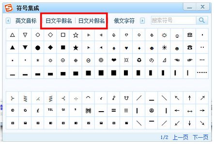 2、在符號(hào)集成中選擇有“日文平假名”和“日文片假名”