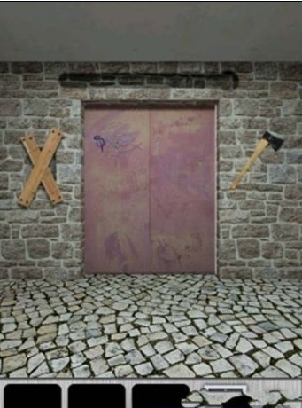 1、首先將右邊墻上的斧頭拿起來,然后使用斧頭將左邊墻上的木頭砍下來;
