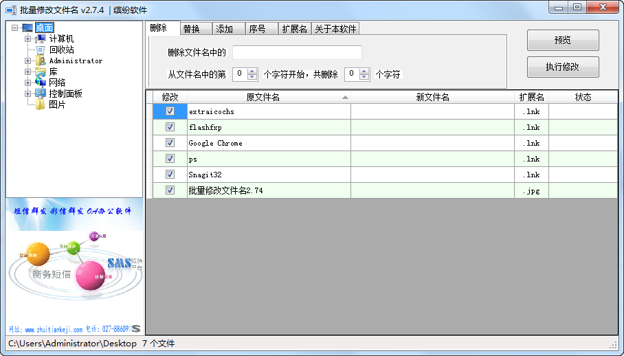 1.批量刪除文件名中的指定字符,或從文件名中指定位置刪除n個(gè)字符。2.批量替換文件名中的字符。