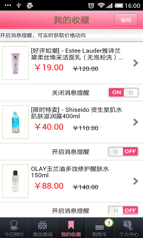 美妝買手安卓版是一款專業(yè)購買美容化妝用品的手機(jī)軟件,提供隨時隨地查詢商品信息、 比價、下單的新型購物服務(wù)。美妝買手涵蓋了歐美、日韓、港臺、內(nèi)容等眾多知名 品牌,涉及護(hù)膚、彩妝、香水、套裝等6大類的萬余種商品。【特色】