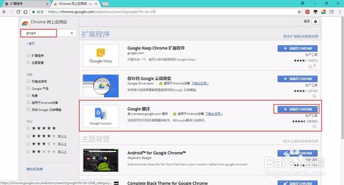 3、在谷歌應用商店中搜索“Google”關鍵詞,Google翻譯插件即可查到,然后點擊添加,如圖。