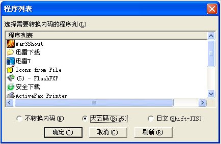 金山內(nèi)碼轉(zhuǎn)換器 官方免費版 金山內(nèi)碼轉(zhuǎn)換器是非常小巧的文本文件內(nèi)碼轉(zhuǎn)換程序,打開內(nèi)碼轉(zhuǎn)換器,再進(jìn)游戲到選單畫面,在內(nèi)碼轉(zhuǎn)換器里選擇漢之云的進(jìn)程,語言改成大五碼,OK 開始新游戲吧。注意:此轉(zhuǎn)換器只能轉(zhuǎn)一次語言,退出游戲后再進(jìn)將失效.