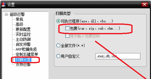 4、超級巡警殺毒軟件支持壓縮包的掃描么?