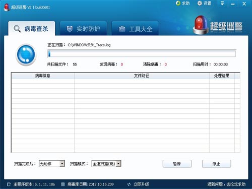 超級巡警殺毒軟件是一款免費(fèi)的專業(yè)殺毒軟件輔助工具,本軟件采用雙引擎智能可查殺各種木馬、流氓軟件、或者是病毒等等,而且還能夠提供穩(wěn)定有效的文件以及注冊表監(jiān)控等功能,讓用戶對自己的電腦系統(tǒng)了如指掌。