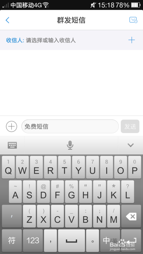進(jìn)入發(fā)送群短信的界面后點(diǎn)擊“收信人”旁邊的“+”