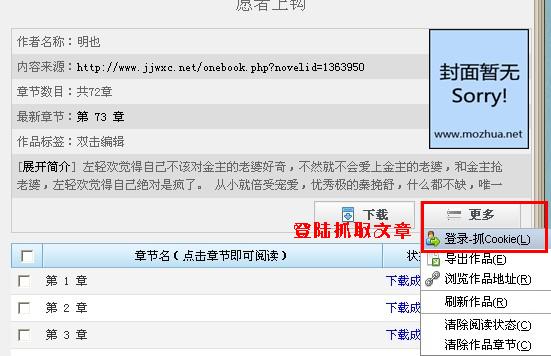 我們?cè)谛≌f(shuō)信息的地方,點(diǎn)擊“更多”按鈕,在下拉菜單中,點(diǎn)擊“抓取Cookie”: