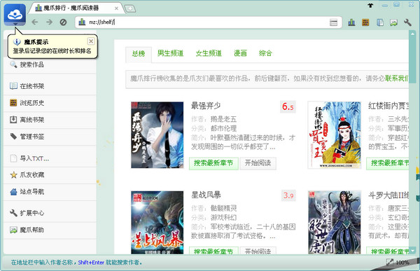 魔爪小說(shuō)閱讀器是一款網(wǎng)絡(luò)流行小說(shuō)下載器、TXT小說(shuō)閱讀器,支持近百個(gè)小說(shuō)/漫畫(huà)網(wǎng)站過(guò)濾廣告、彈窗下載純凈的內(nèi)容,具有在線過(guò)濾閱讀系統(tǒng)、小說(shuō)搜索引擎;軟件集成人性化的魔爪社區(qū),崇尚快樂(lè)閱讀、快樂(lè)交友!是人手必備的集小說(shuō)下載器、TXT小說(shuō)閱讀器、小說(shuō)搜索器一體的永久免費(fèi)軟件。