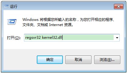 4、最后點(diǎn)擊開始菜單-->運(yùn)行-->輸入regsvr32 kernel32.dll 后,回車即可解決錯誤提示!