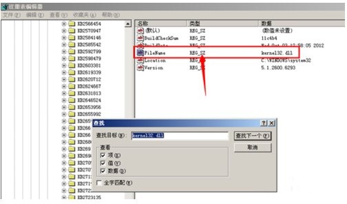 通過ctrl+F 搜索,kernel32.dll 搜索找到相關(guān)的項(xiàng)目刪除清理