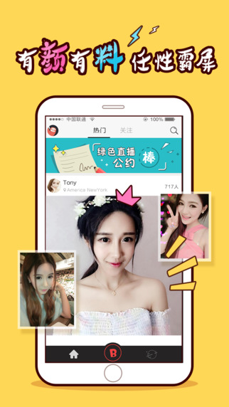 獨特優(yōu)勢:最直播:在線視頻直播,隨時隨地看美女,賞才藝,想看就看。