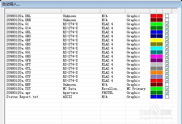 文件——I導入——U自動導入,打開自動導入窗口。找到geber文件,在右面窗口可以到geber文件。