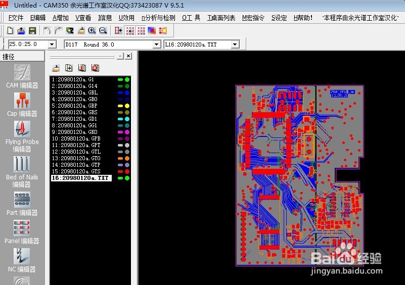 5、在CAM350軟件中,如圖所示,可以查看電路板的每一個層,雙擊可以切換到指定的層。