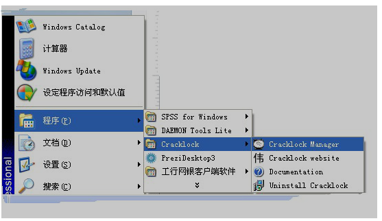 4.下載后安裝cracklock,由開始菜單打開cracklock manager,見下圖。