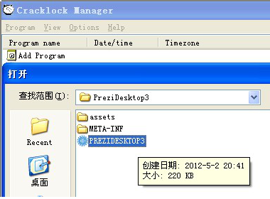 5. 打開后左鍵雙擊add programe,從prezi的安裝目錄找到prezidesktop3可執(zhí)行文件(擴(kuò)展名是.exe)(一般在C盤program files下面),點(diǎn)擊“打開”