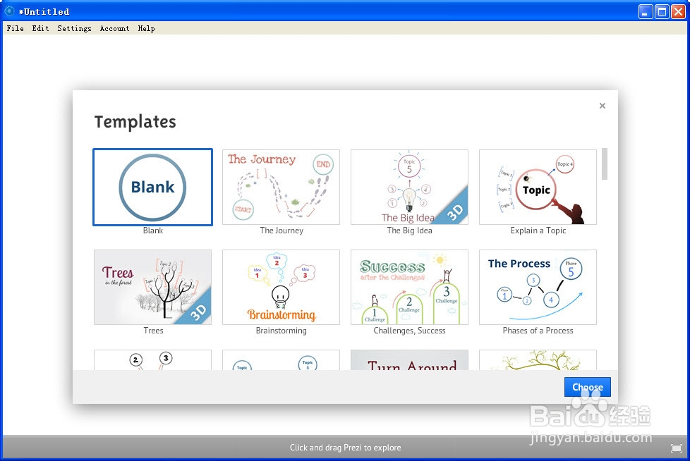 prezi desktop是prezi的離線編輯軟件,使用該軟件前需要登陸prezi的賬號(hào)(免費(fèi)賬號(hào)的使用期為30天)