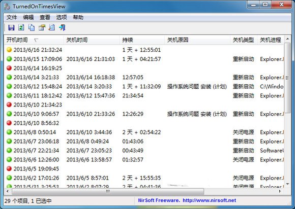 TurnedOnTimesView是一款電腦開關(guān)機時間查詢軟件,這小工具幫你整理了所有開關(guān)機的歷程,若是想要查看自己加班了多久、電腦用了多久等等,就能用這工具查看。