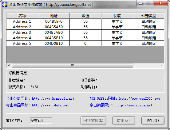 使用方法:運(yùn)行游戲,打開修改器點(diǎn)擊應(yīng)用即可開啟兩項(xiàng)功能修改,運(yùn)行修改器的時候,修改器可能會提示游戲沒有運(yùn)行。這時不要管它,只要你選對了版本,即使提示游戲沒有運(yùn)行,修改器也還是有作用的。如果不確定自己的游戲版本,那就每個修改器都試一下吧。