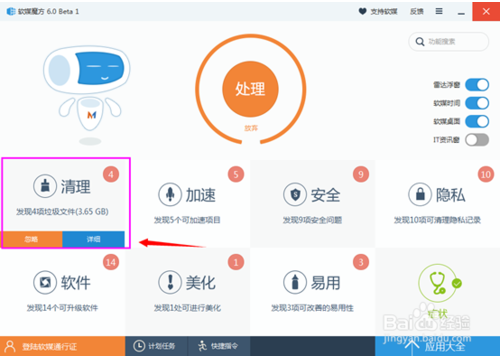 如果需要優(yōu)化,最簡單的辦法就是掃描之后。點擊處理即可