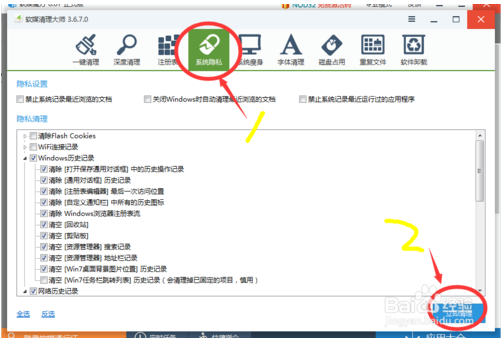 5、系統(tǒng)隱私,對電腦敏感信息清理(記憶的賬號,操作記錄等等)