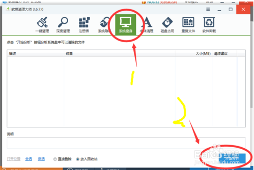 6、系統(tǒng)瘦身,點擊分析,分析出來的結(jié)果可以選擇性的清理