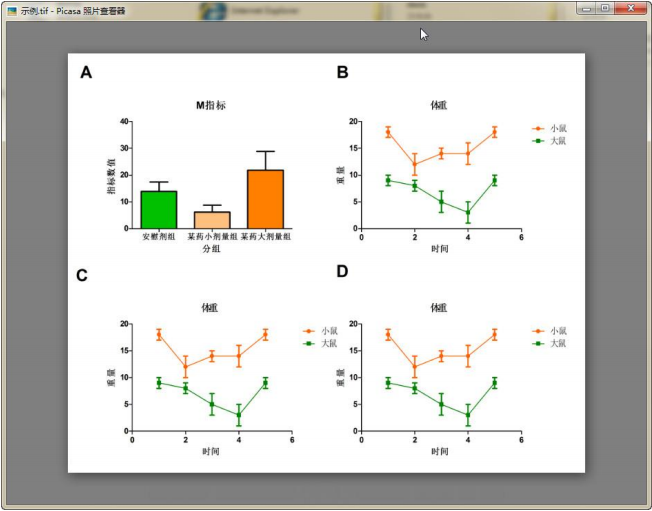 我們要做的圖表是三根柱子,分別代表安慰劑組、某藥小劑量組,某藥大劑量組。這三組各有幾只老鼠,分別測(cè)試一個(gè)指標(biāo)的數(shù)值。然后用柱狀圖反應(yīng)這三組這個(gè)值的差別。要求圖表上有標(biāo)準(zhǔn)差的error bar(誤差線)。我們選擇“column”(表示我們將把每組的數(shù)據(jù)輸入分別到表格的每個(gè)列之中)。如果你不懂就看看我畫的示例圖,圖五。在圖四中,我們?cè)谟疫呥x擇柱狀圖,然后在下方的plot右邊的下拉框中選擇“mean with SD”(意思圖表包括柱子本身以及帶標(biāo)準(zhǔn)差的誤差線)。
