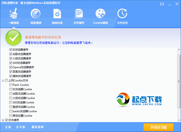 閃電清理專(zhuān)家是一款小巧而又簡(jiǎn)單的系統(tǒng)垃圾清理工具,擁有最簡(jiǎn)潔的頁(yè)面和強(qiáng)力清理系統(tǒng)垃圾的功能,還可強(qiáng)力清除注冊(cè)表垃圾,無(wú)論是瀏覽網(wǎng)頁(yè)還是玩游戲,都是最佳選擇。讓您的電腦速度得到極大的提升。擁有掃描速度快、體積小、界面簡(jiǎn)潔等特點(diǎn)和功能。