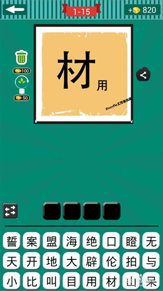 第一種,看文字的大小,包括字體的大小。像這個(gè)“材”字是大的,“用”字是小的,顯然成語(yǔ)是大材小用。還有的要看字體的粗細(xì)來(lái)判斷。