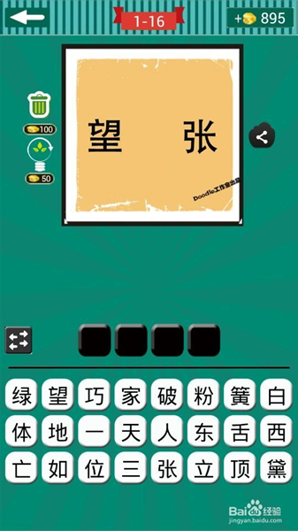 第二種是看文字的位置,有的是分左右,有的分上下。圖中的“望”是在左邊,“張”在右邊,左西右東,顯然成語(yǔ)是東張西望。