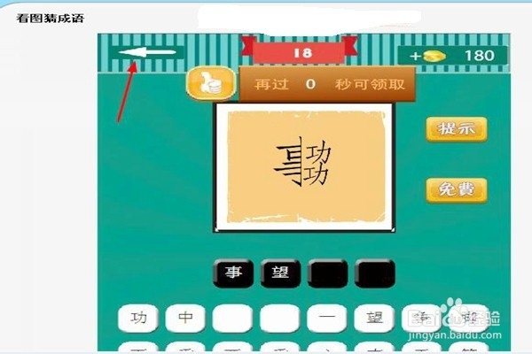 如果我們?cè)诓鲁烧Z(yǔ)填字的時(shí)候,填錯(cuò)了,我們可以用鼠標(biāo)的左鍵點(diǎn)擊圖中箭頭所指向的部位,重新做這一題。如果我們實(shí)在想不起來(lái)是什么成語(yǔ)的時(shí)候,我們可以點(diǎn)擊提示和免費(fèi)。