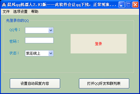 第一步、登陸qq打開晨風(fēng)qq聊天機(jī)器人后,界面輸入QQ賬號(hào)及密碼即可登陸。