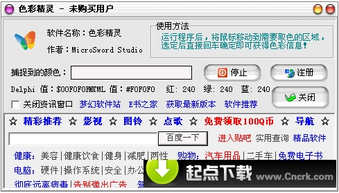 一款采集屏幕顏色的軟件,軟件不大,但是功能強(qiáng)大,實(shí)用性強(qiáng),易操作,對(duì)網(wǎng)頁設(shè)計(jì)師、photoshop、corldraw等平面設(shè)計(jì)師處理顏色是一個(gè)非常好的幫手,特別對(duì)網(wǎng)頁設(shè)計(jì)師有更大的幫助,本軟件會(huì)自動(dòng)生成網(wǎng)頁十六進(jìn)制代碼,只要在網(wǎng)頁代碼內(nèi)粘貼就可以把想要的顏色顯示在網(wǎng)頁上;還能分離紅、綠、藍(lán)三顏色值;可以對(duì)三種顏色做不同的調(diào)整;如此酷的工具還不快快下載,把她帶回家?^-^
