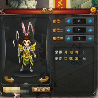 染色系統(tǒng)尋找NPC錢小月(天下城:30,153)消耗物品月珊瑚、琉璃盞,共有8000種搭配方式,可以將角色染成不同顏色