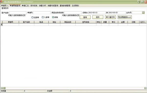 錄入多少行銷售商品記錄軟件就打印多少行,能自動(dòng)分頁(yè)打印,快捷的單據(jù)前一張,后一張查找功能。