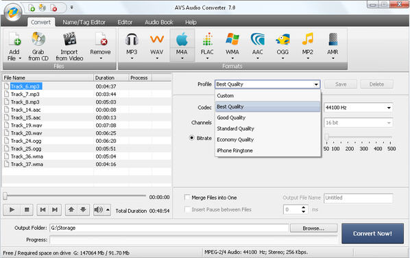 AVS音頻變換器還可以從DVD, MPEG, MP4, AVI, DIVX, MOV, WMV, VOB, 3GP, RM, QT, FLV等視頻文件中導(dǎo)出或轉(zhuǎn)換音頻。