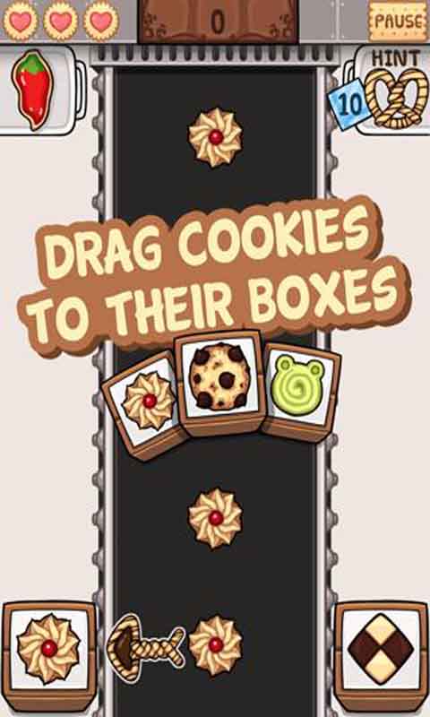 餅干包裝 v1.2 安卓版 餅干包裝是一款簡單的休閑游戲,考驗你反應(yīng)速度的時候來了!拖動餅干到相應(yīng)的包裝盒里即可,眼疾手快就能獲得更多的分數(shù),別讓餅干調(diào)到地上!