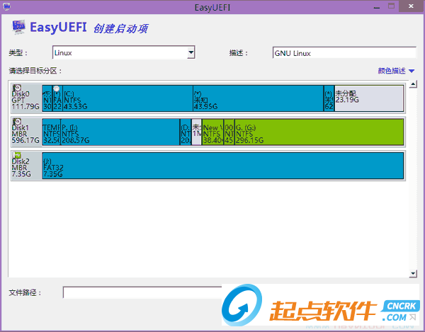 點擊創(chuàng)建可以添加UEFI引導項,包括Linux以及windows引導項。附帶一提的是EasyUEFI所創(chuàng)建引導項支持引導clover。